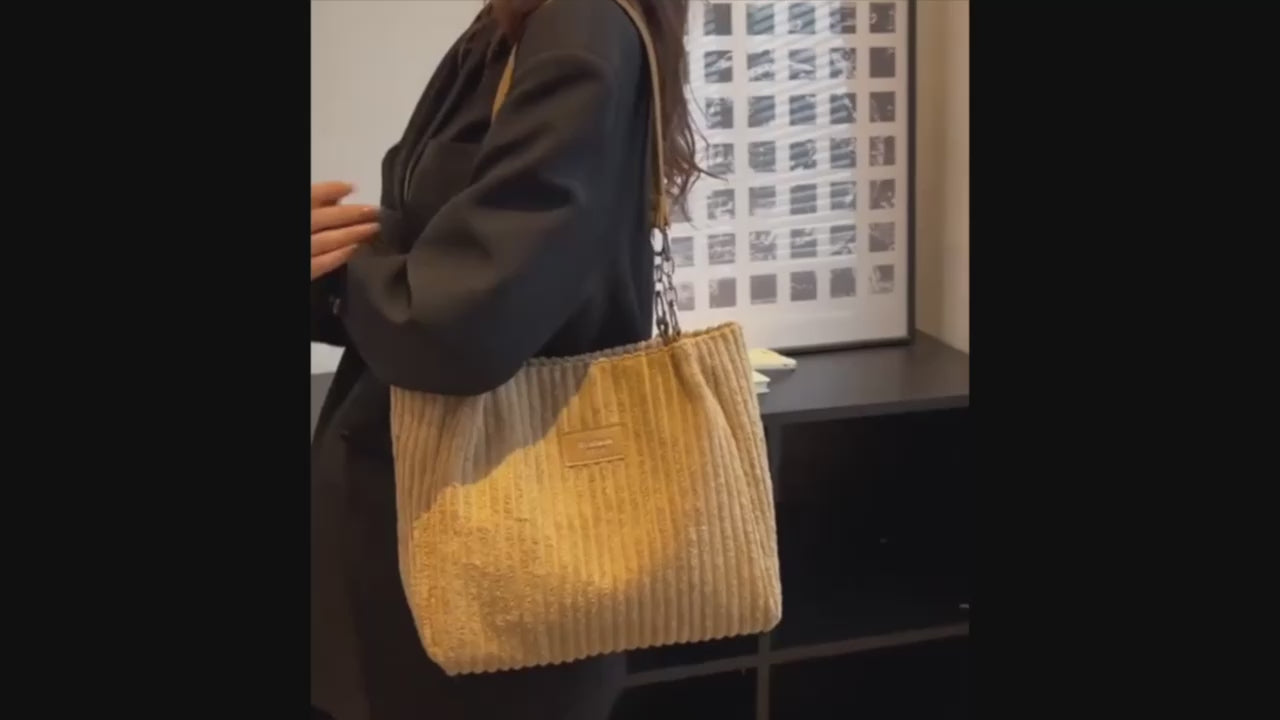 En stilren og rummelig skuldertaske i blødt fløjl med kædestrop og lynlåslukning. Perfekt til hverdag, studie eller shopping.